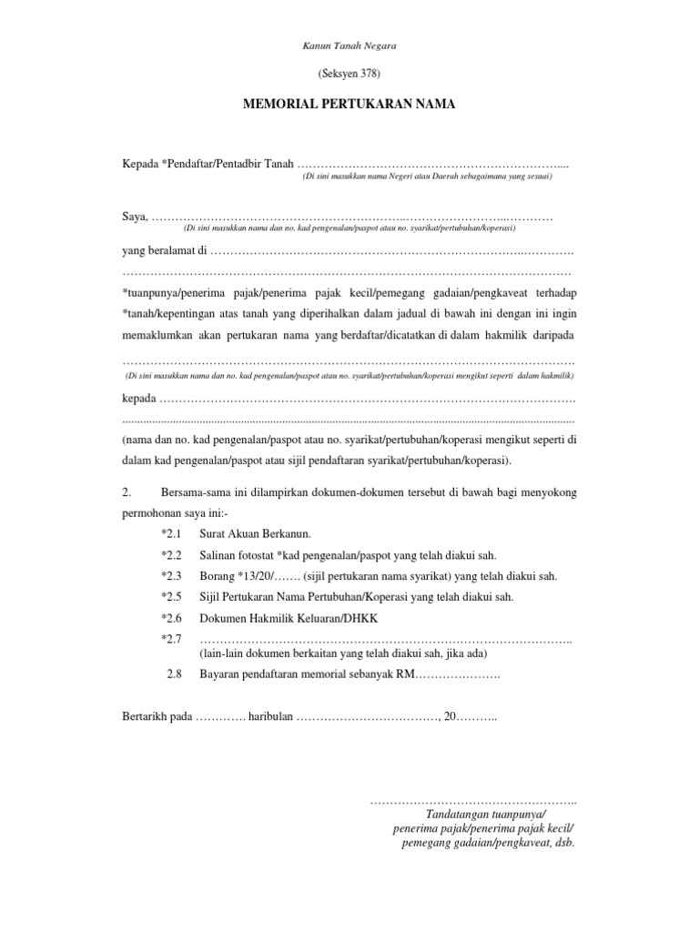 Cara Tukar Nama Tanah Borang Kos Kekandamemey